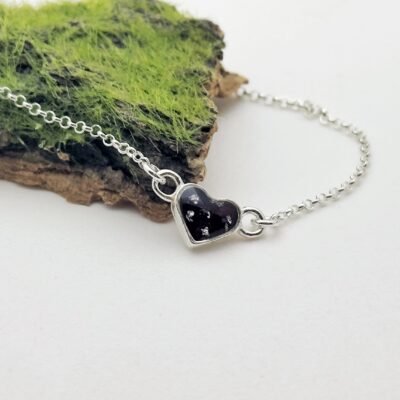 Bransoletka serduszko z Twoimi kwiatami, włosami, prochami lub sierścią zwierząt (srebro 925)