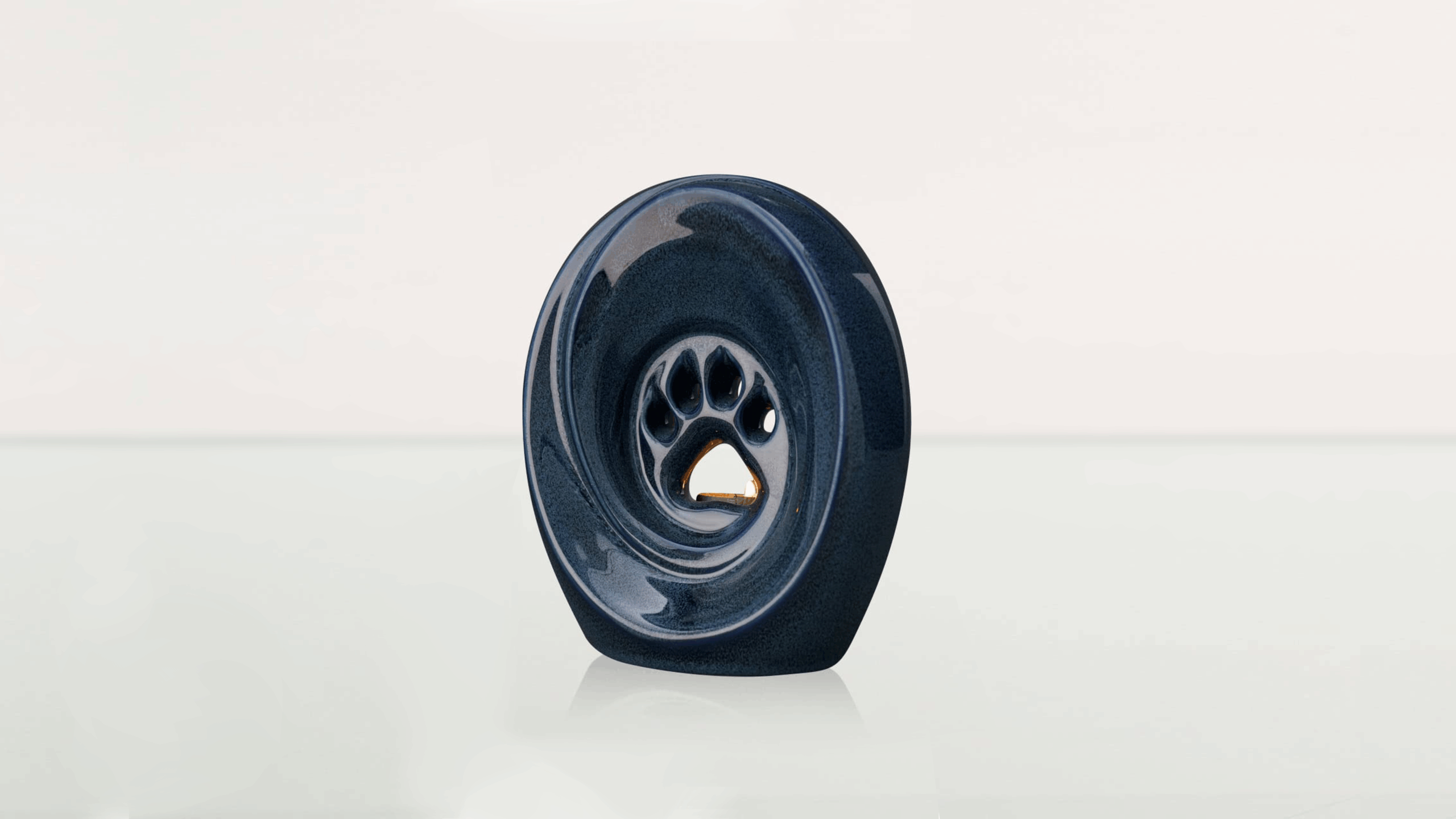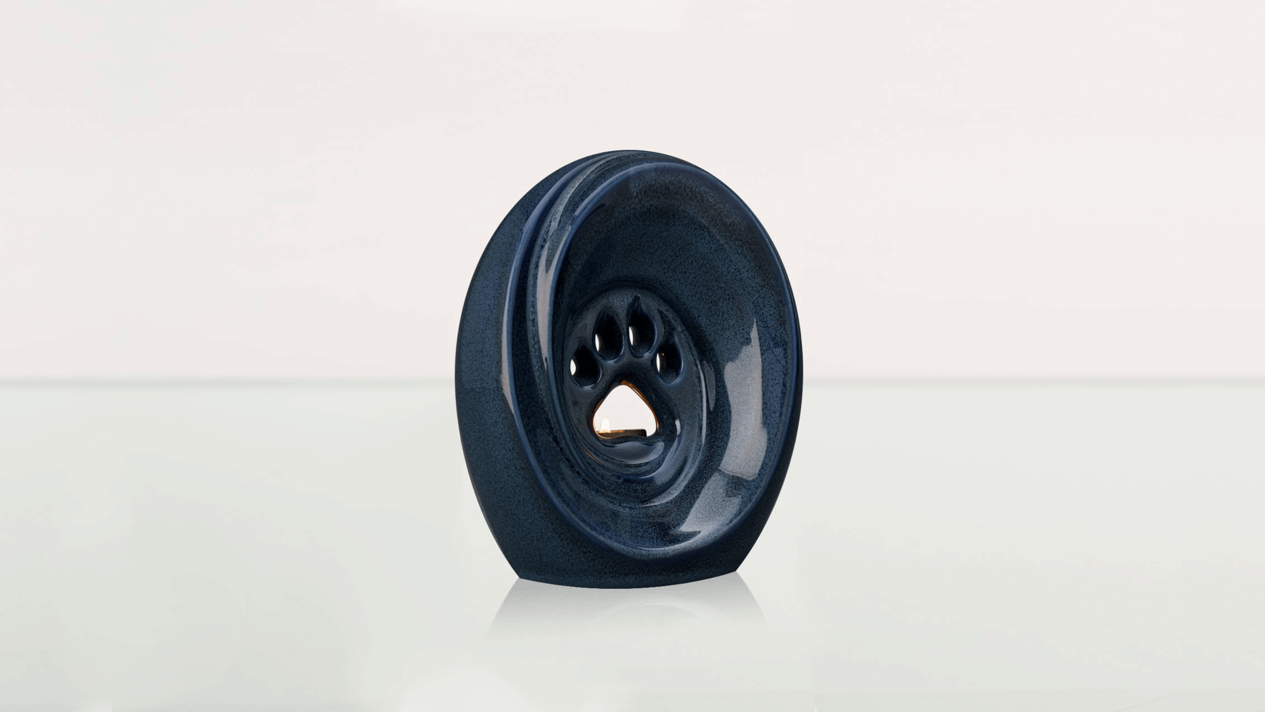 Ceramiczna urna pamiątkowa dla zwierząt z subtelnym motywem łapki. Projekt z miejscem na małą świeczkę pozwala dodać symboliczny akcent światła, podkreślając pamięć o ukochanym pupilu. Produkt łączy wysokojakościowe wykonanie z eleganckim wykończeniem.