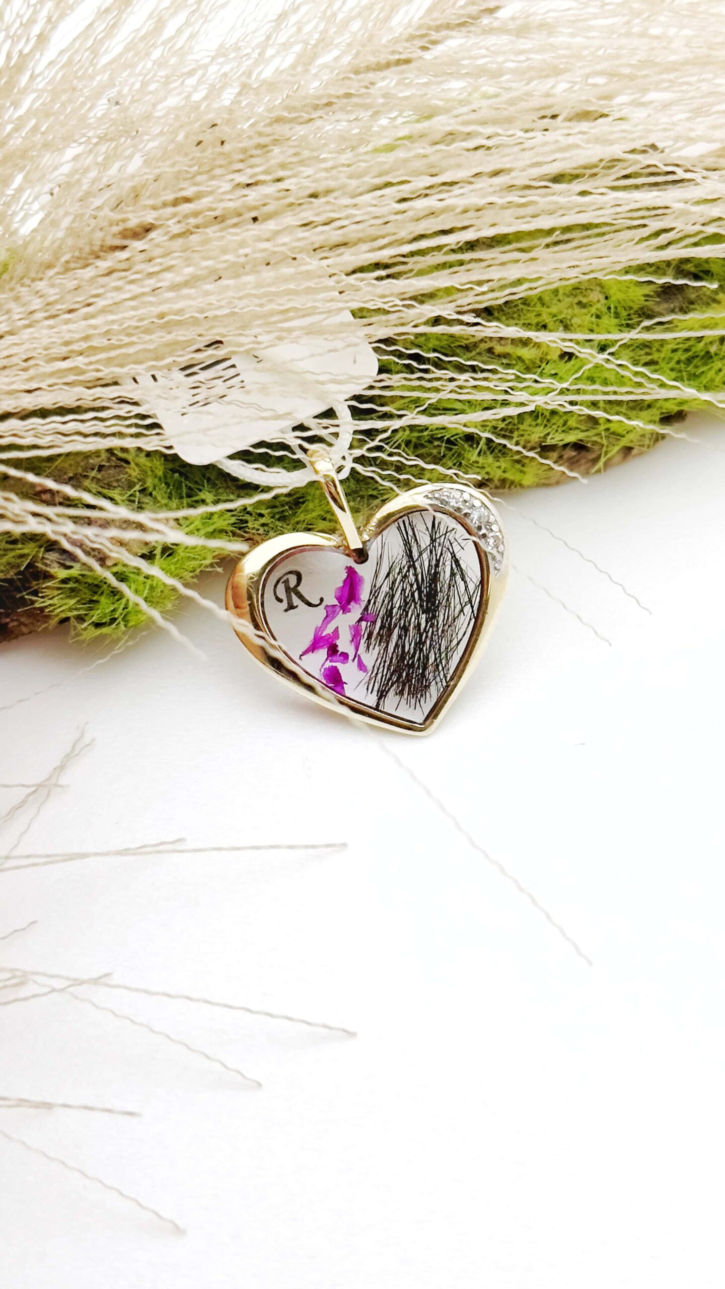 Złota zawieszka serce z włosami, prochami lub sierścią zwierząt (próba 333)